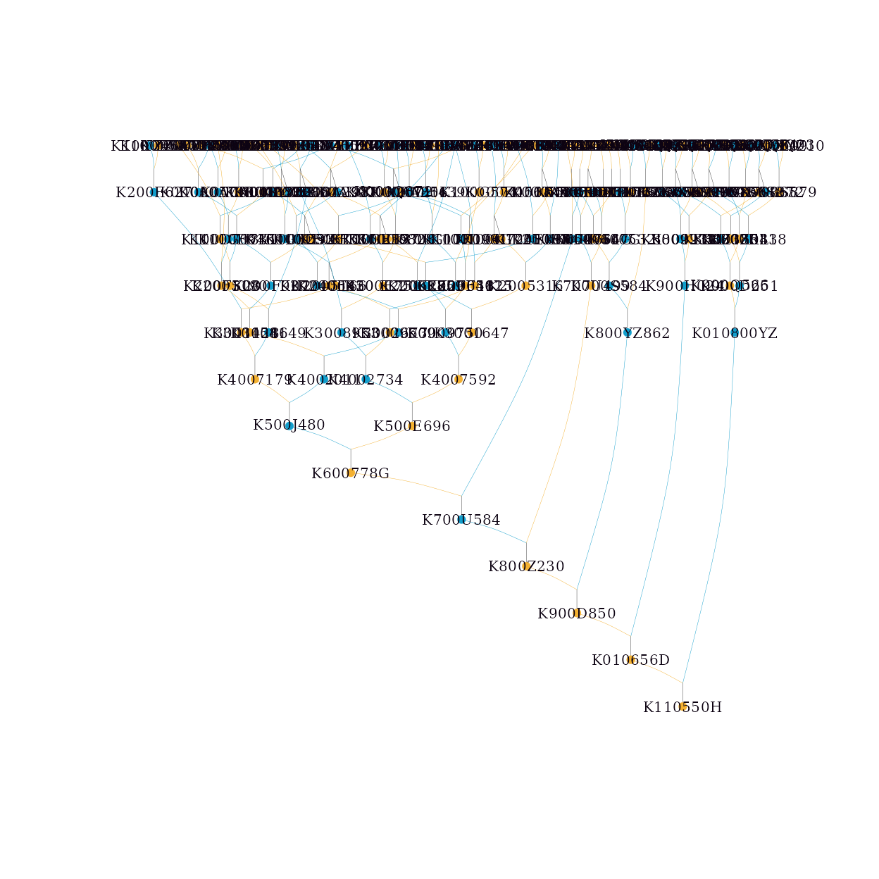 visped(tidyped(deep_ped, cand = cand_J11_labels, tracegen = 3)) Too many individuals (>=3362) in one generation!!! Two choices: