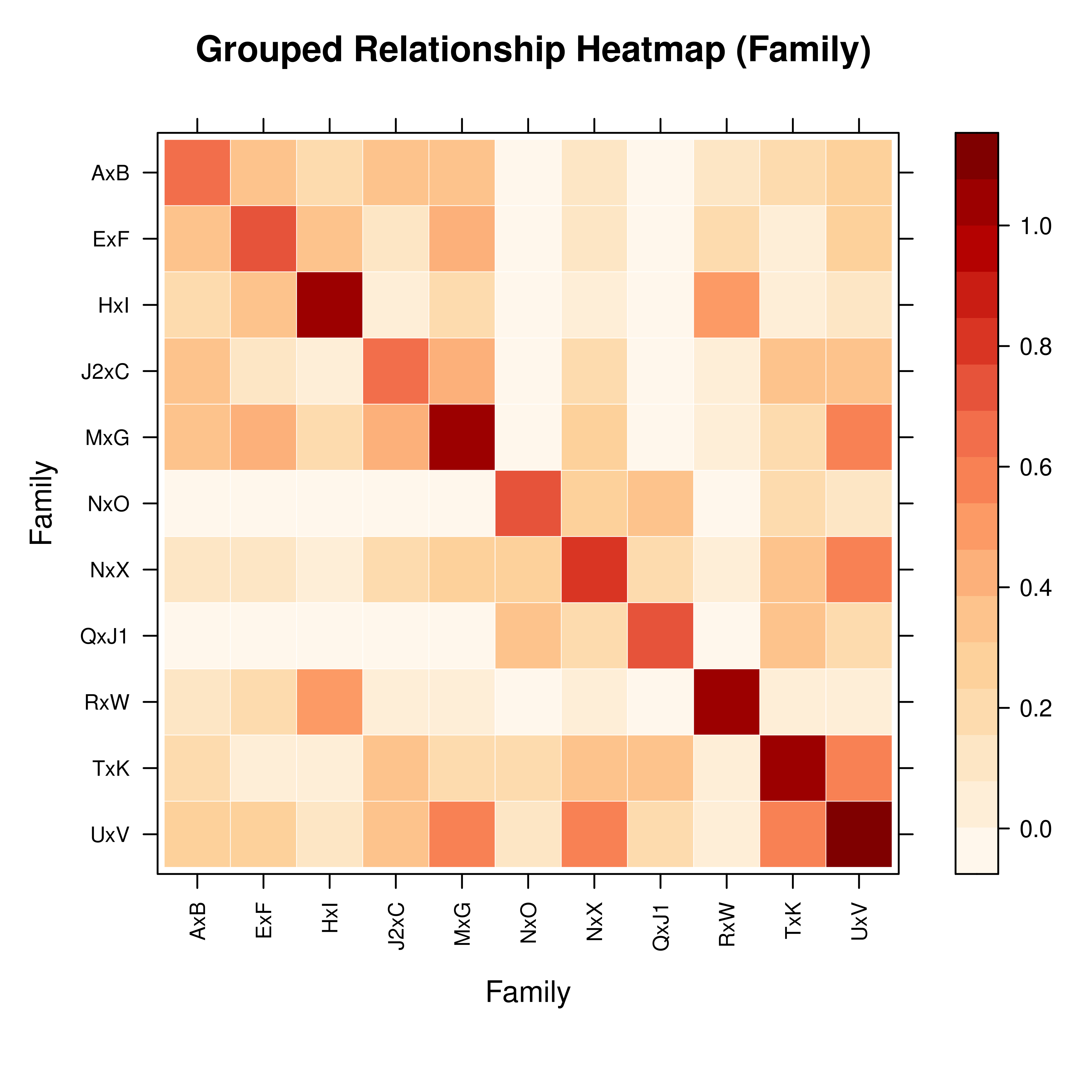 pedto group by (e.g.,"Family","Gen","Year"). When grouping is enabled:Individual-level matrix is aggregated to a group-level matrix (computing mean relationship coefficients between groups).